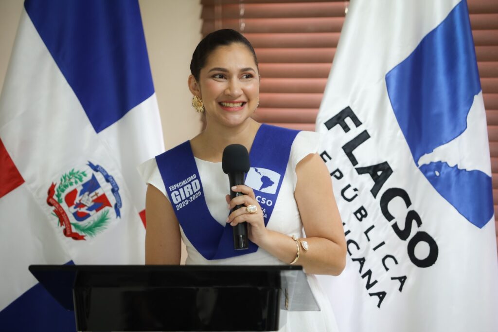 La ceremonia, que tuvo lugar en el salón de conferencias de FLACSO RD, fue encabezada por la Dra. Josefina Zaiter, presidenta del Comité FLACSO. Las palabras de apertura estuvieron a cargo de la directora de FLACSO RD, Dra. Cheila Valera, quien habló de los aportes de este programa pionero en el país: “FLACSO ha contribuido a la incidencia, a la construcción de conocimiento y al vínculo entre actores del tema. Esta cohorte marca un hito en ese camino”.